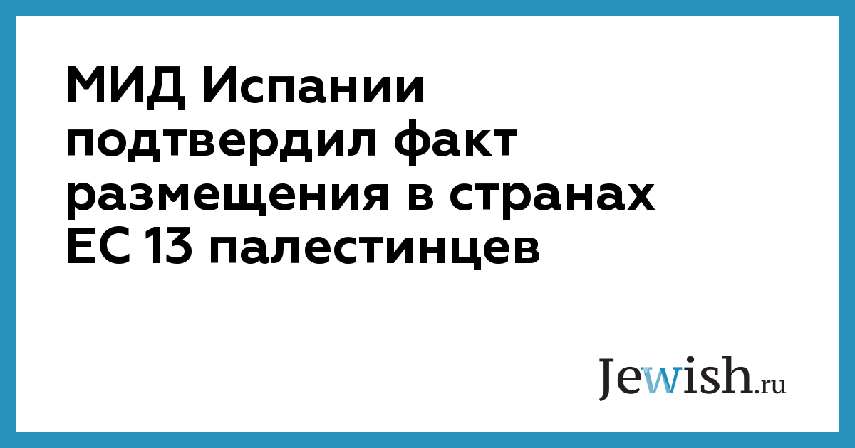 МИД Испании официально подтвердил факт размещения в странах ЕС 13 депортированных из церкви Рождества в Бейт-Лехеме палестинцев. Согласно достигнутой договоренности Испания и Италия примут по три палестинца каждая. По два палестинца отправятся в Грецию и Ирландию, по одному — в Финляндию и Португалию. Один человек из данной группы останется на Кипре. Премьер-министр Испании Хосе Мария Аснар заявил, что уже согласован и юридический статус, которым будут пользоваться эти люди в европейских государствах.