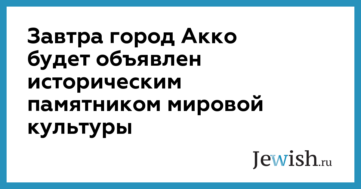На облик древнего города оказали воздействие и крестоносцы, и турки-османы, и европейцы. В Акко преобладает арабский архитектурный стиль; вместе с тем сильны и следы многих других национальных культур. Население Акко – евреи, мусульмане, христиане и бахайцы – представляет собой образец успешного взаимодействия между Западом и Востоком, между старым и новым, в плане как общекультурном, так и архитектурном. В списке «Исторические памятники мировой культуры» ЮНЕСКО на Ближнем Востоке насчитывается уже 102 названия, и теперь к ним присоединяется Акко. Компания по развитию Старого Акко намерена особо отметить 21 мая, день, когда будет официально объявлено о включении города в этот список. Будут организованы специальные экскурсии, семинары и лекции, а вечером состоится официальная церемония провозглашения города памятником мировой культуры, в которой примет участие министр просвещения Лимор Ливнат.
