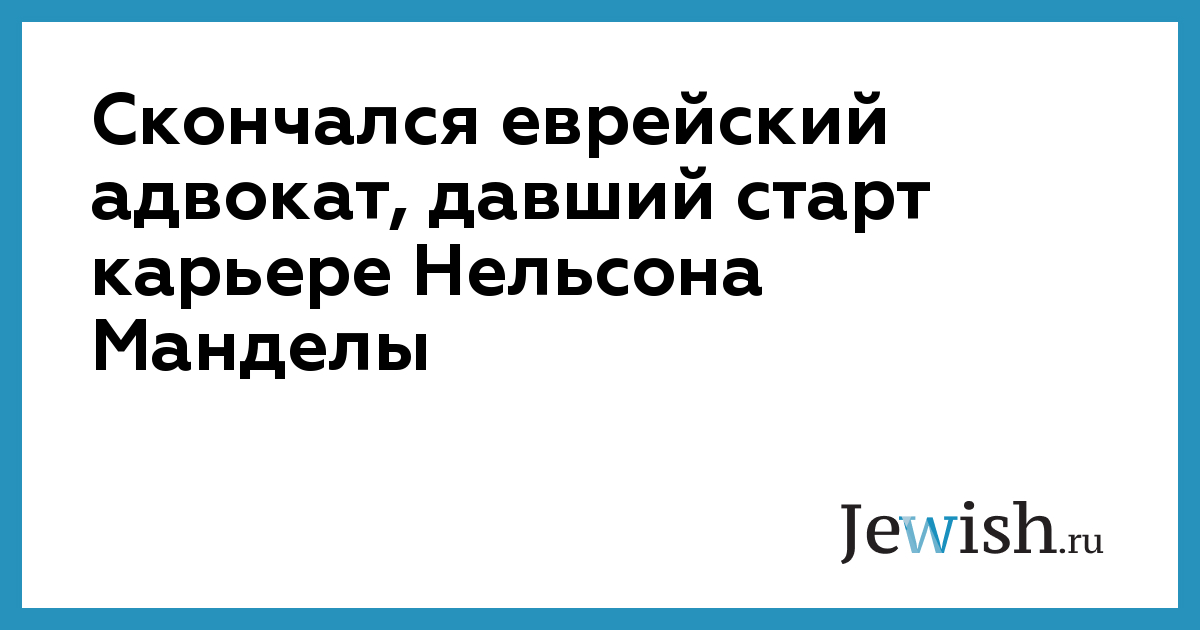 Скончался еврейский адвокат, давший старт карьере Нельсона Манделы