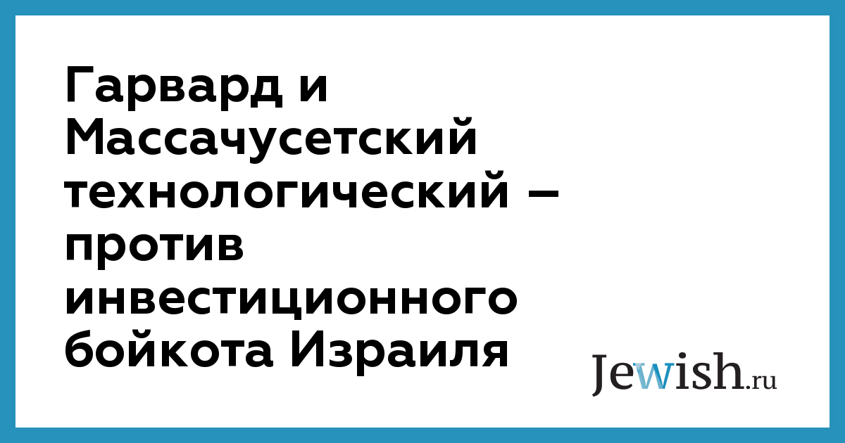 Гарвард и Массачусетский технологический – против инвестиционного бойкота Израиля