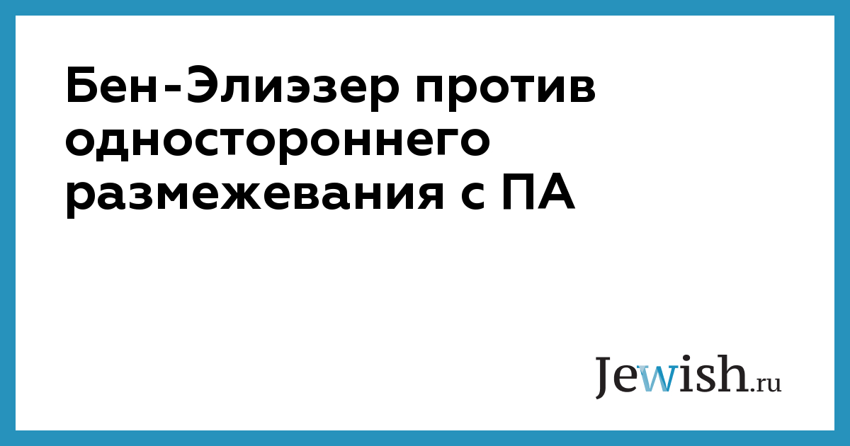 Бен-Элиэзер против одностороннего размежевания с ПА