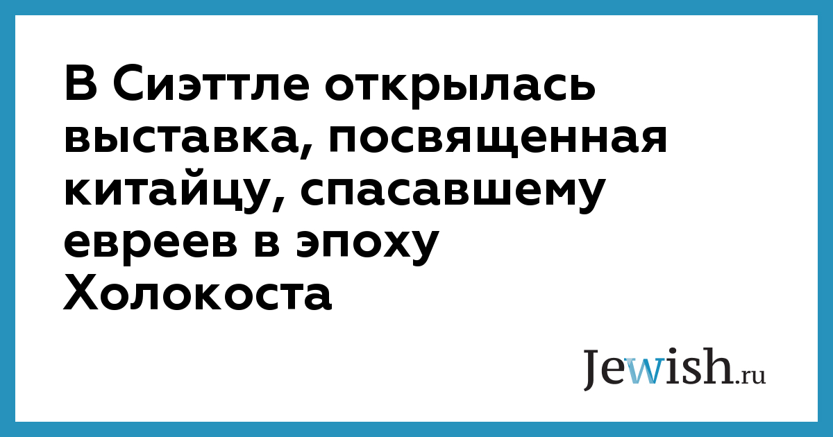 В Сиэттле открылась выставка, посвященная китайцу, спасавшему евреев в эпоху Холокоста