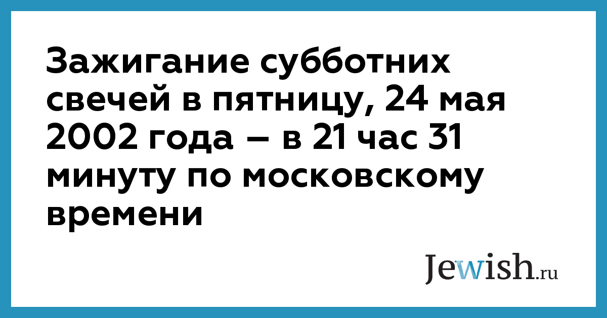 Зажигание субботних свечей в пятницу, 24 мая 2002 года – в 21 час 31 минуту по московскому времени