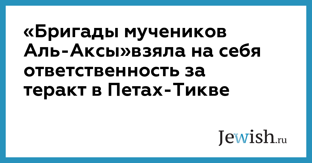 «Бригады мучеников Аль-Аксы»взяла на себя ответственность за теракт в Петах-Тикве