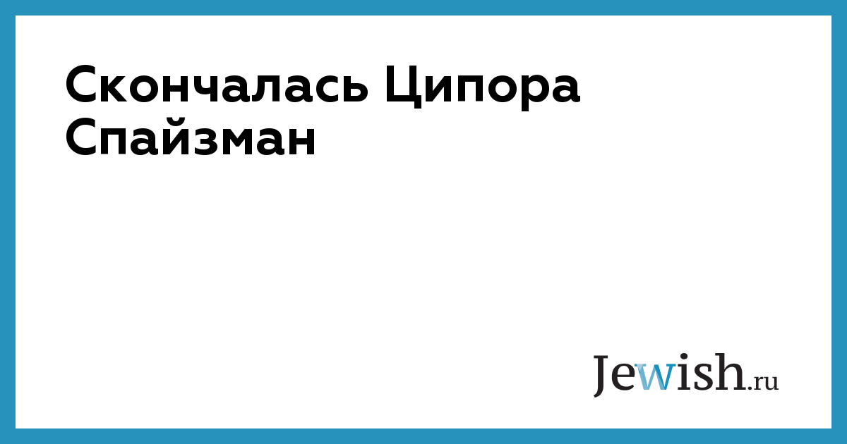 Ципора Спайзман, сыгравшая одну из ключевых ролей в послевоенном развитии театрального искусства на языке идиш, скончалась 18 мая в возрасте 86 лет. В последние годы жизни Ципора Спайзман трудилась в качестве культурного организатора в центре пребывания для престарелых. Ранее она была удостоена нескольких наград за постановки, выполненные вместе с Фольксбиен-театром. Кроме этого, она работала ответственным продюсером в театральной компании, ставившей спектакли на идиш. В 1989 году она сыграла роль в фильме "Враги: история любви" по мотивам романа Исаака Башевиса Зингера, где главные роли исполнили Рон Сильвер и Анжелика Хьюстон. Уроженка Польши, Спайзман в годы Второй мировой войны попала в трудовой лагерь на оккупированной российской территории, где она, работая акушеркой, в невероятно тяжелых условиях приняла роды более чем у тысячи рожениц. При этом она еще находила силы для того, чтобы устраивать в лагерных бараках театральные представления на идиш, как рассказывал ее сын Бен-Ами. В одном из свои интервью она сказала: "Вся моя жизнь была посвящена сохранению культуры и языка идиш. Гитлеру не удалось уничтожить ее, Сталину — тоже".