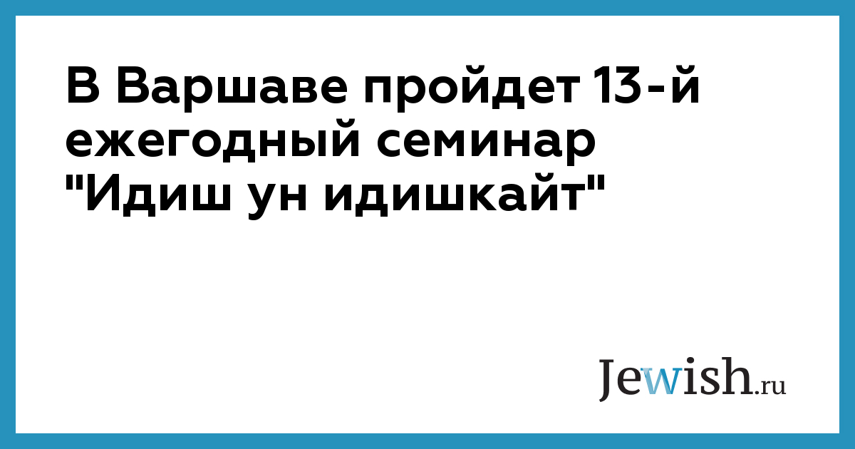 Израильское национальное управление по культуре идиш сообщает: 13-й ежегодный семинар "Идиш ун идишкайт" состоится с 9 по 30 июля 2002 г. в Варшаве. В программе семинара: язык идиш (3 уровня), еврейская литература, фольклор, традиция, песни и драма на идиш, лексикология. Преподаватели — лучшие специалисты из Израиля. Слушателям из СНГ предоставляется бесплатно обучение, жилье, питание, учебный тур и субсидия до 70 долларов на проезд. Принимаются все желающие в возрасте до 35 лет и обладающие элементарными знаниями языка идиш. Следует до 10 июня 2002 г. сообщить о себе: ФИО, год рождения, образование, место работы, учебы, должность или род занятий, уровень знания идиш, вероисповедание родителей, рекомендация местной еврейской общины или еврейской культурно-общественной организации. Данные принимают по адресу: Dr. Mordehay Yushkovsky National Authority for Yiddish Culture 14 Brener str. Tel — Avav 63826. E_mail: yudenir@netvision.net.il