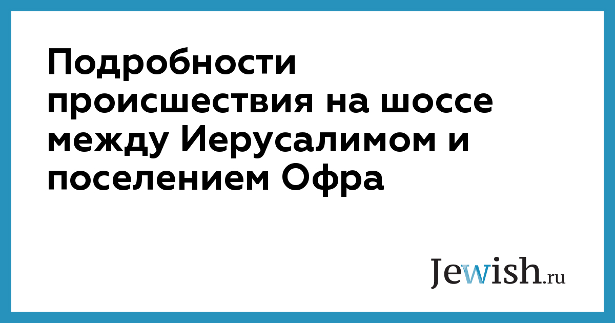 Подробности происшествия на шоссе между Иерусалимом и поселением Офра