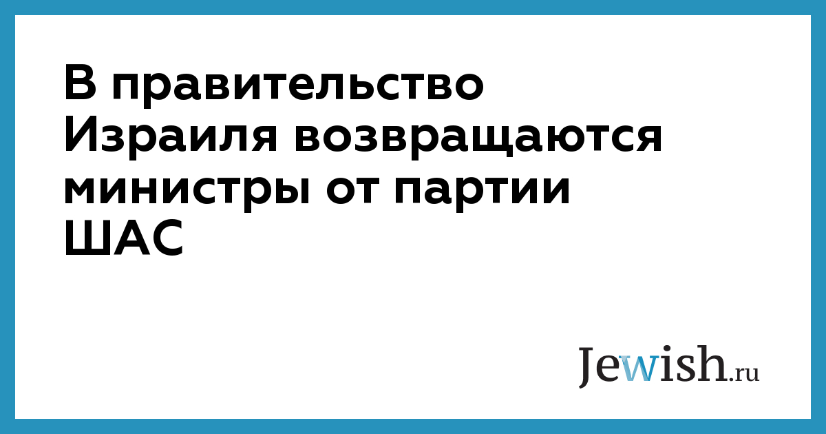 В правительство Израиля возвращаются министры от партии ШАС