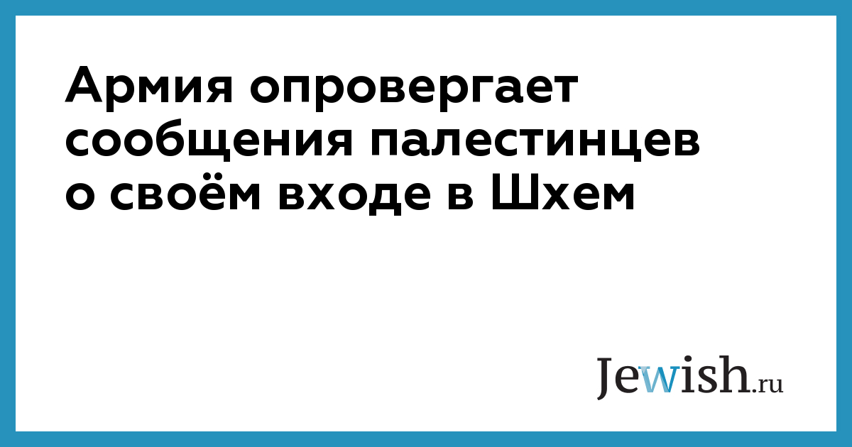 Армия опровергает сообщения палестинцев о своём входе в Шхем