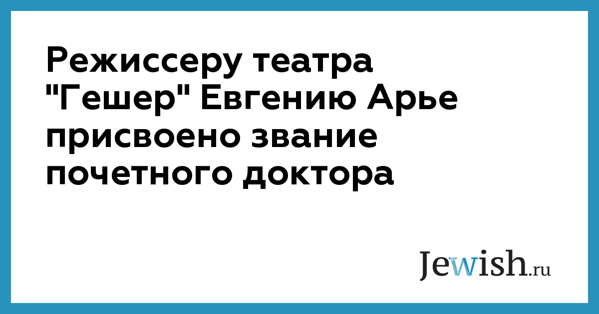 Режиссеру театра "Гешер" Евгению Арье присвоено звание почетного доктора