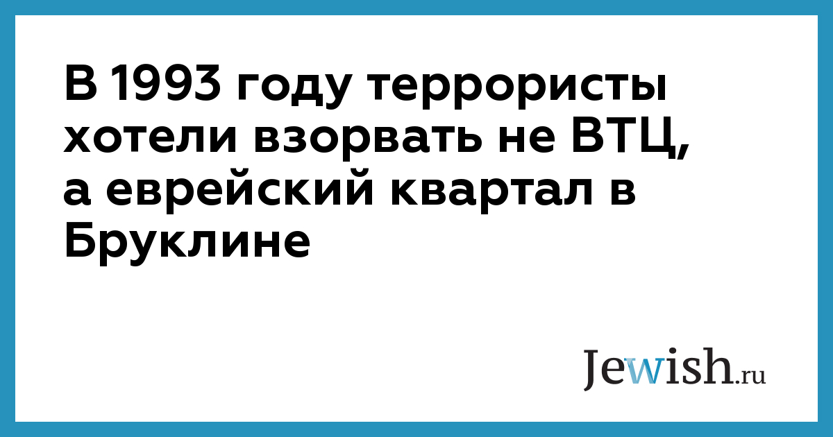 В 1993 году террористы хотели взорвать не ВТЦ, а еврейский квартал в Бруклине