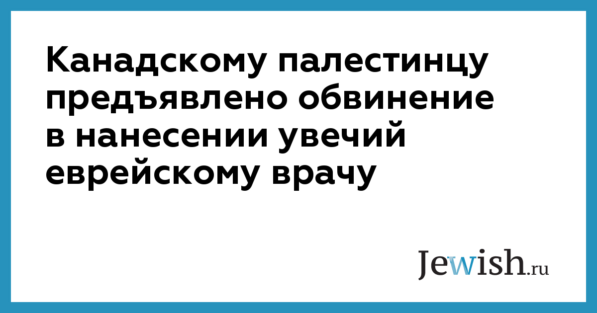 Канадскому палестинцу предъявлено обвинение в нанесении увечий еврейскому врачу