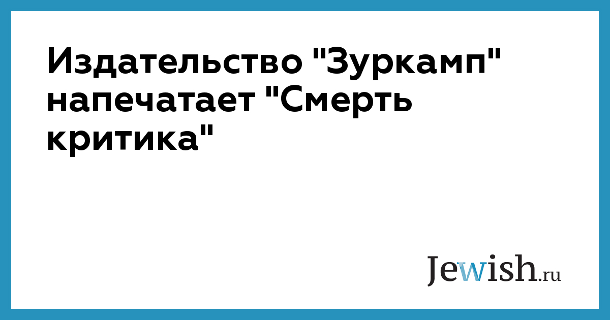 Издательство "Зуркамп" напечатает "Смерть критика"
