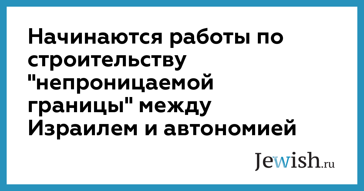 Израильские власти сообщили о начале работ по строительству так называемой "непроницаемой границы" между Израилем и Палестинской автономией, чтобы предотвратить проникновение в страну палестинских террористов. Министерство внутренней безопасности Израиля сообщило о том, что на этой неделе начнется создание так называемой «непроницаемой границы» на участке протяженностью 120 километров от перекрестка Мегиддо до центра Самарии. Речь идет о строительстве сплошной стены, оснащенной технологическими новшествами, позволяющими полностью контролировать и прилегающие к границе участки. Точной информации о том, где именно пройдет граница, пока нет. Известно лишь, что защитной стеной будет окружен Иерусалим и что работы займут 10 – 12 месяцев. Генерал Узи Даян обнародовал статистические данные, из которых следует, что если Палестинская автономия не станет самостоятельным государством, а будет и далее входить в состав Израиля, то уже к 2008 году еврейское и арабское население численно сравняются, а к 2020 году о евреях можно будет говорить как о незначительном национальном меньшинстве государства Израиль.