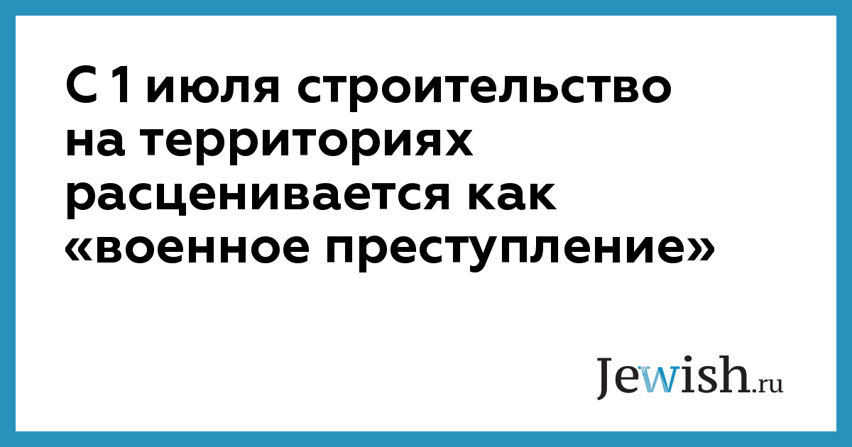 С 1 июля строительство на территориях расценивается как «военное преступление»