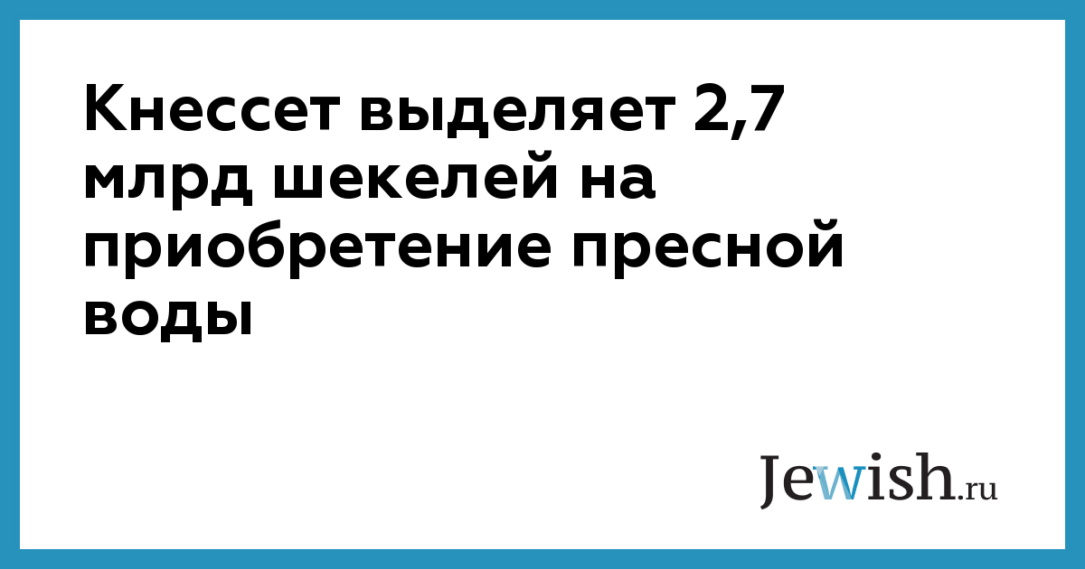Кнессет выделяет 2,7 млрд шекелей на приобретение пресной воды