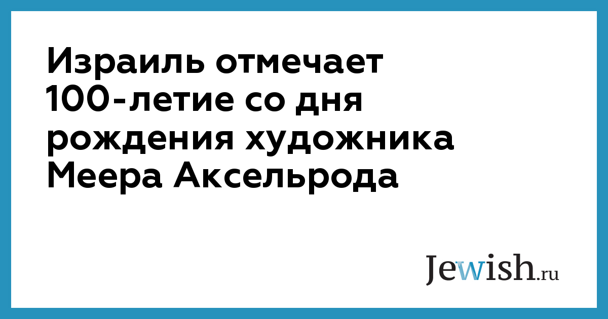 Израиль отмечает 100-летие со дня рождения художника Меера Аксельрода