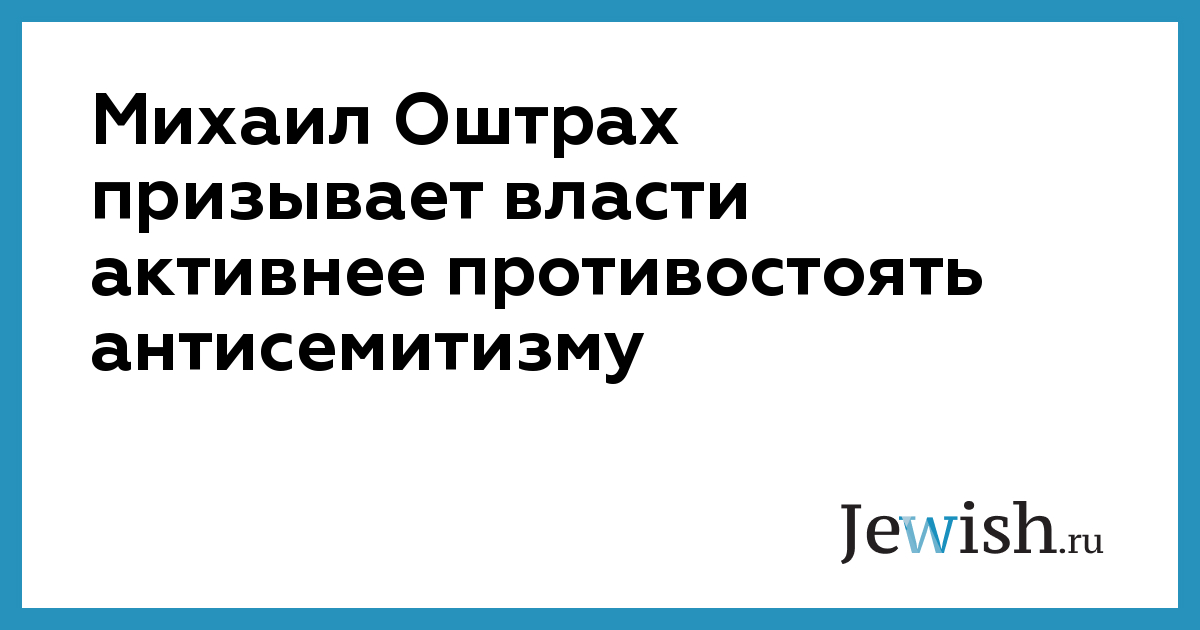 Михаил Оштрах призывает власти активнее противостоять антисемитизму