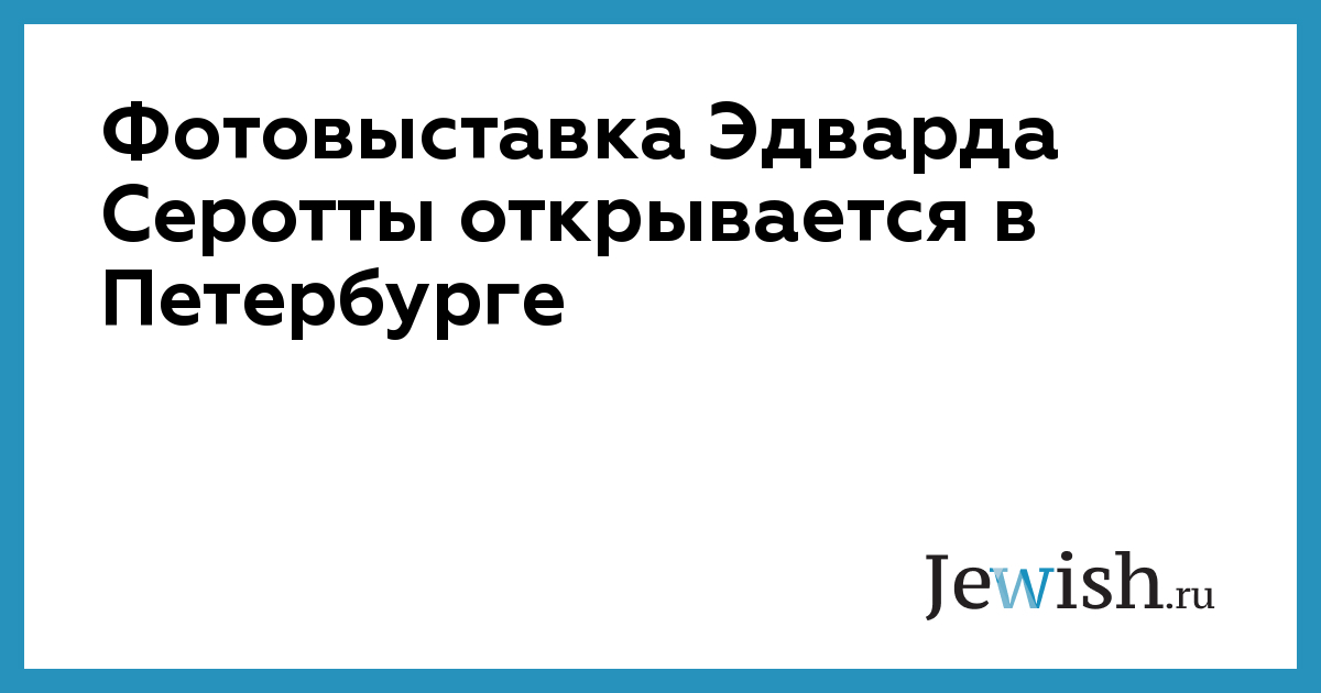 В Санкт-Петербурге в выставочном зале Института истории искусств с 20 июня по 20 июля пройдет выставка фоторабот Эдварда Серотты "Мы здесь:". Экспозиция посвящена возрождению еврейских общин Центральной и Восточной Европы. На выставке, организованной Немецким культурным центром им. Гете при содействии Центра "Петербургская иудаика" и Израильского культурного центра, представлены работы фотографа 1985-2000 годов. Директор Центра исследований и документации Центральной Европы (ЦЕНТРОПА) Э.Серотта фиксирует современную жизнь еврейских общин на территории стран бывшего "социалистического лагеря" не только как историк и генеалог, но и как фотохудожник. По его свидетельству, в последние годы, все отчетливее становится видно, что евреи не только были, но и остались неотъемлемой частью Центральной Европы и, несмотря на Холокост и последовавшие за этим десятилетия социализма в странах Восточной Европы, традиция не пресеклась.