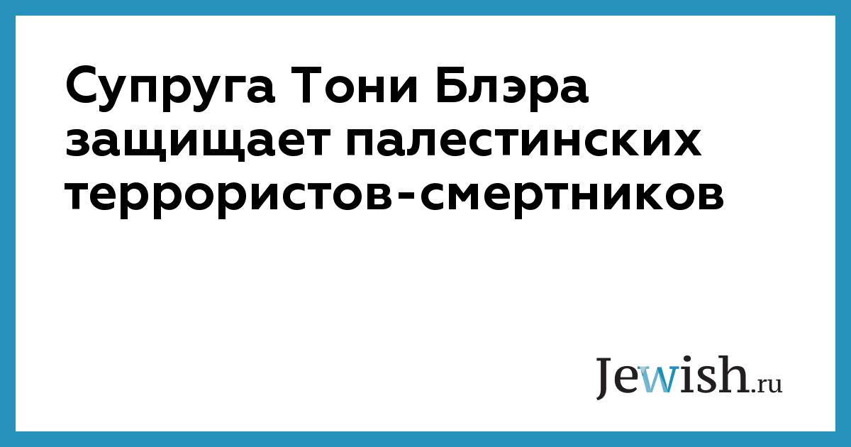Супруга Тони Блэра защищает палестинских террористов-смертников