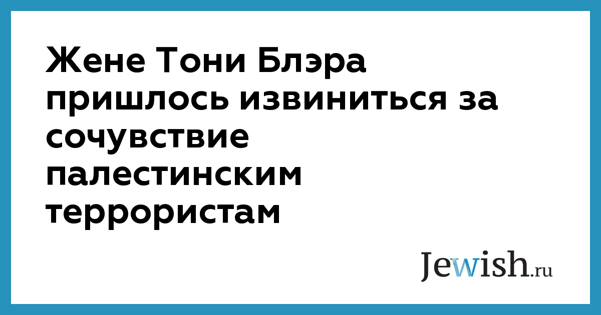 Жене Тони Блэра пришлось извиниться за сочувствие палестинским террористам