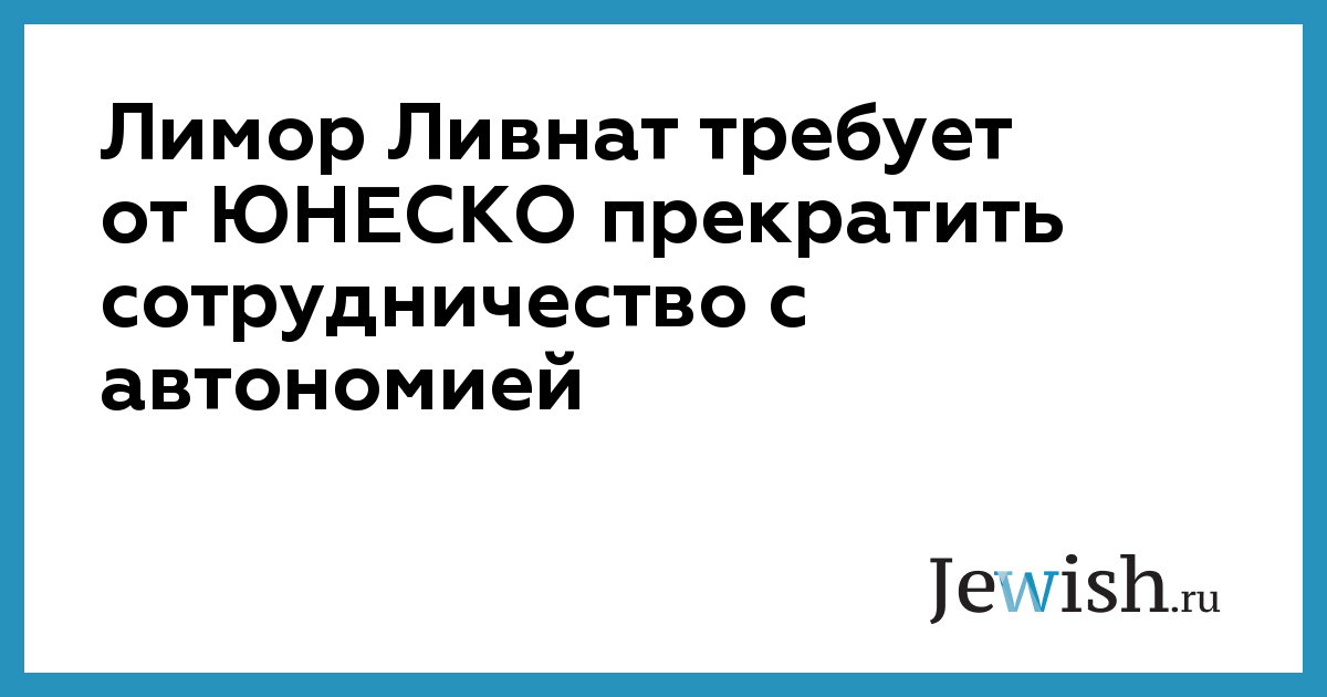 Лимор Ливнат требует от ЮНЕСКО прекратить сотрудничество с автономией