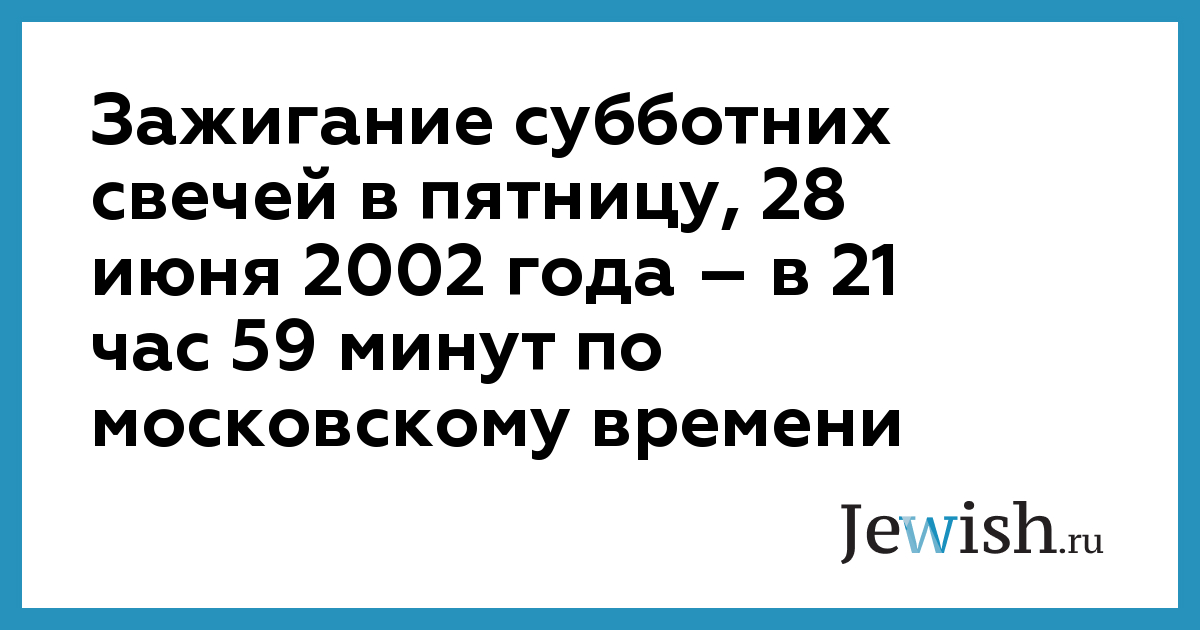 Зажигание субботних свечей в пятницу, 28 июня 2002 года – в 21 час 59 минут по московскому времени