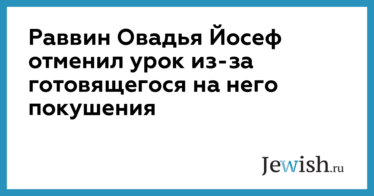 Раввин Овадья Йосеф отменил урок из-за готовящегося на него покушения