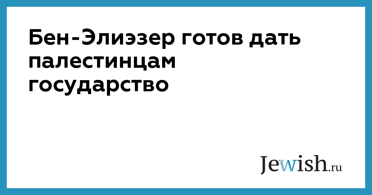 Бен-Элиэзер готов дать палестинцам государство