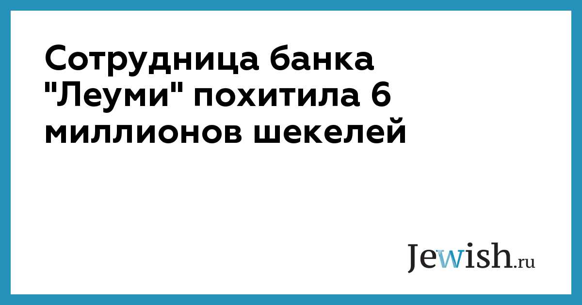 Сотрудница банка "Леуми" похитила 6 миллионов шекелей