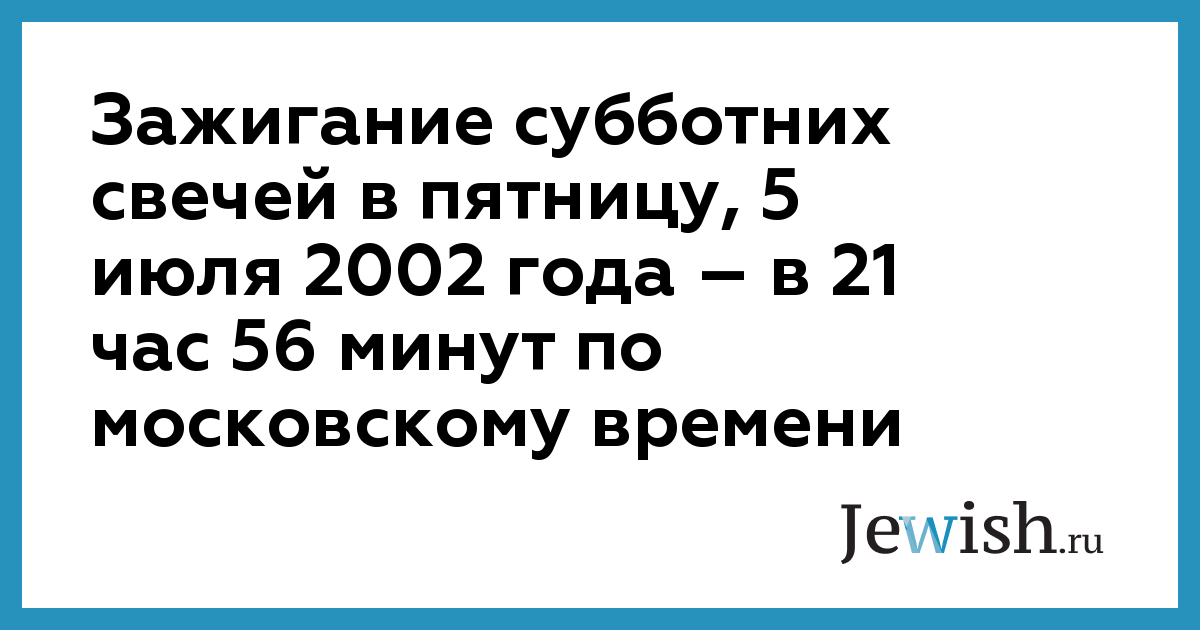 Зажигание субботних свечей в пятницу, 5 июля 2002 года – в 21 час 56 минут по московскому времени
