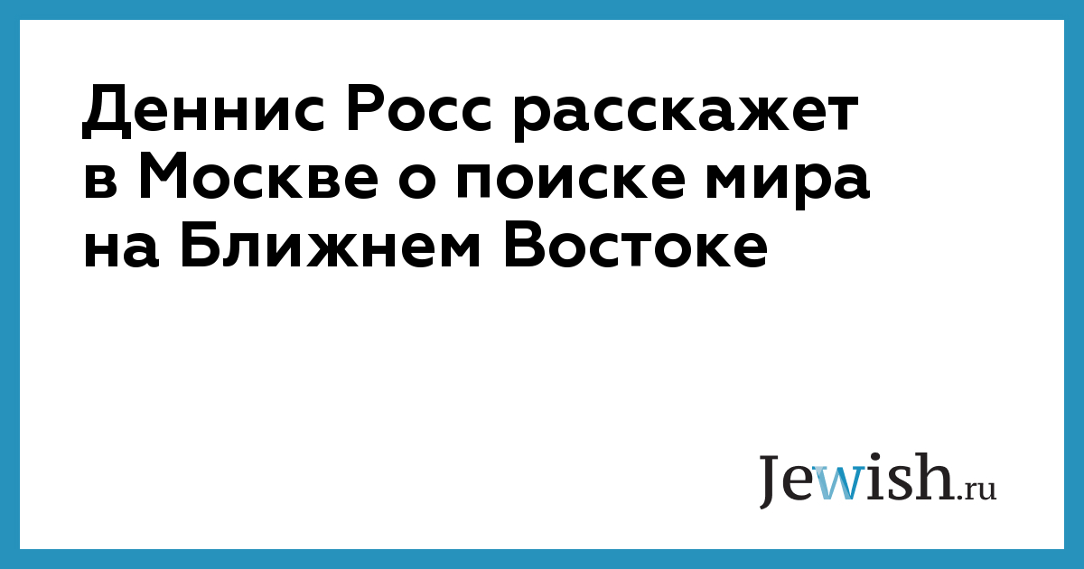 Деннис Росс расскажет в Москве о поиске мира на Ближнем Востоке