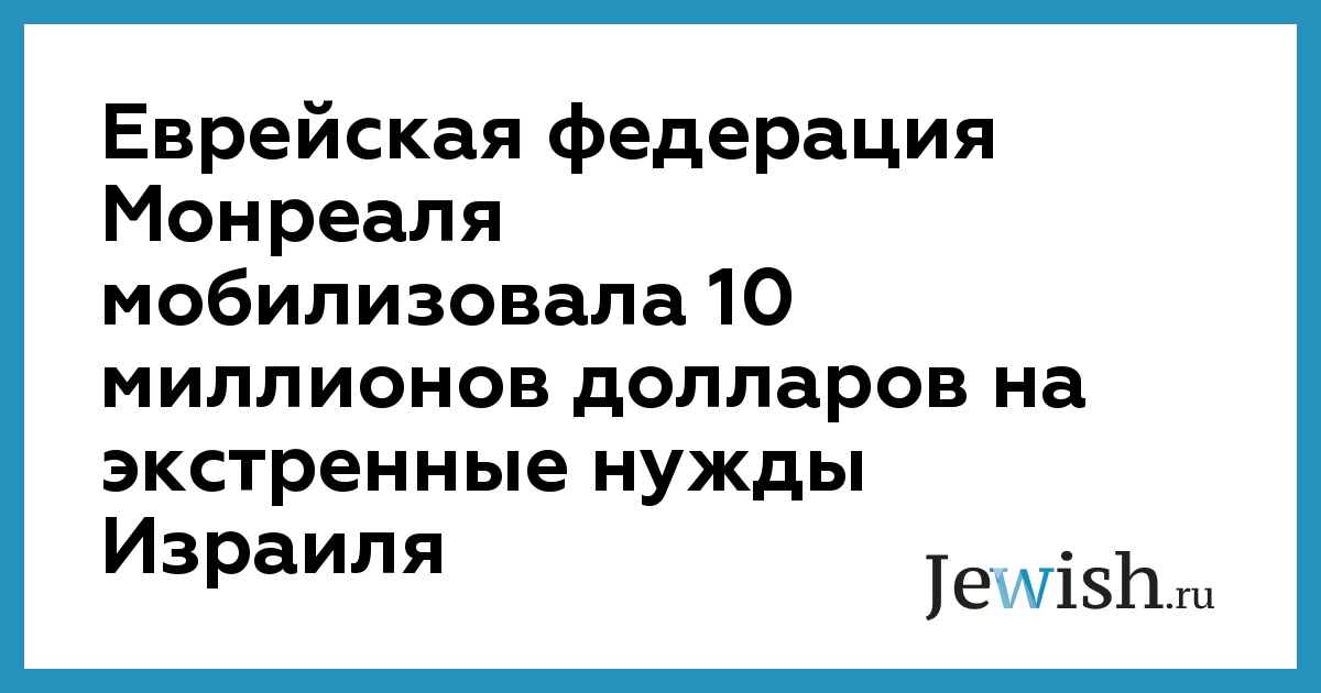 Еврейская федерация Монреаля мобилизовала 10 миллионов долларов на экстренные нужды Израиля