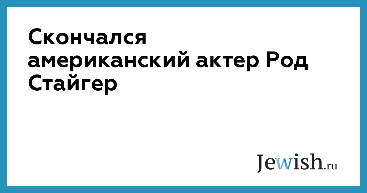 Скончался американский актер Род Стайгер