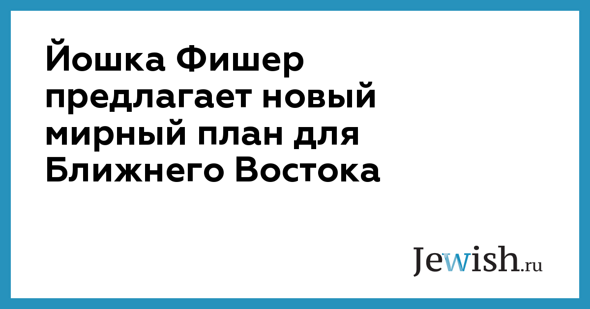 Йошка Фишер предлагает новый мирный план для Ближнего Востока