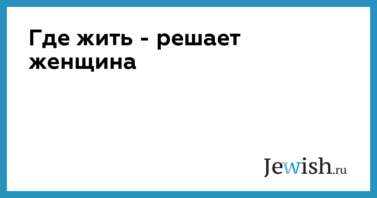 Где жить — решает женщина