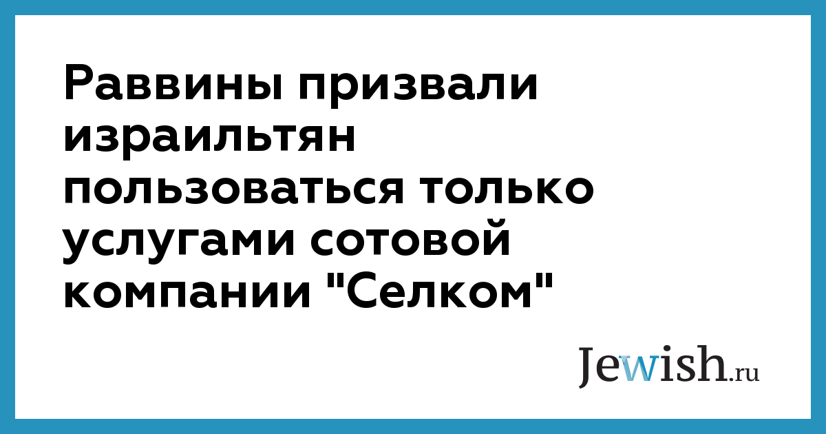 Раввины призвали израильтян пользоваться только услугами сотовой компании "Селком"