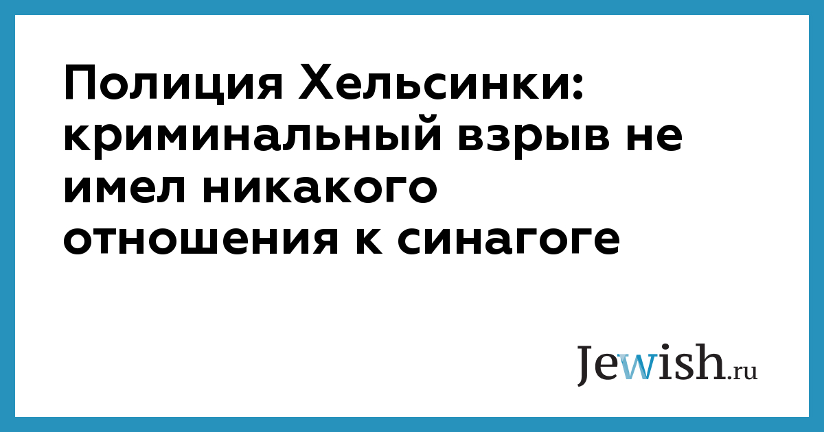 Полиция Хельсинки: криминальный взрыв не имел никакого отношения к синагоге
