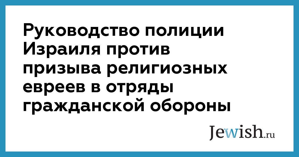 Руководство полиции Израиля против призыва религиозных евреев в отряды гражданской обороны