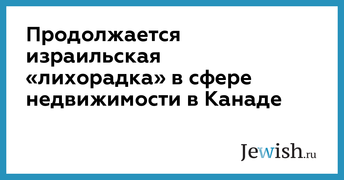Продолжается израильская «лихорадка» в сфере недвижимости в Канаде