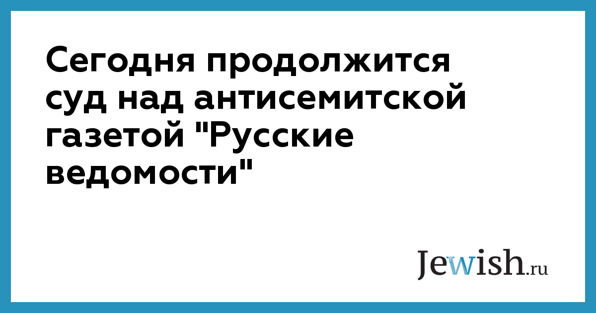 Сегодня продолжится суд над антисемитской газетой "Русские ведомости"