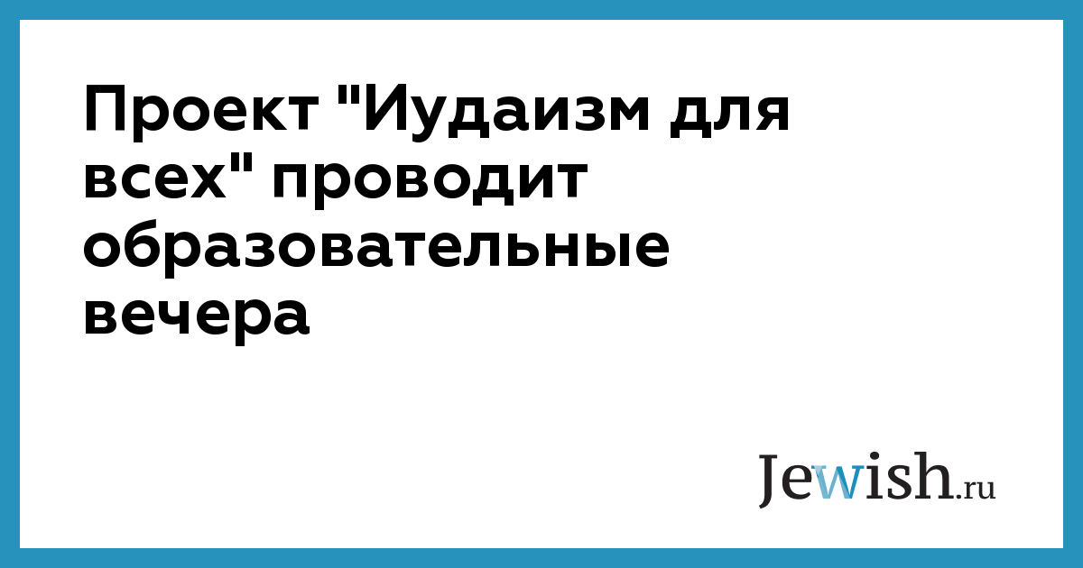 Проект "Иудаизм для всех" проводит образовательные вечера