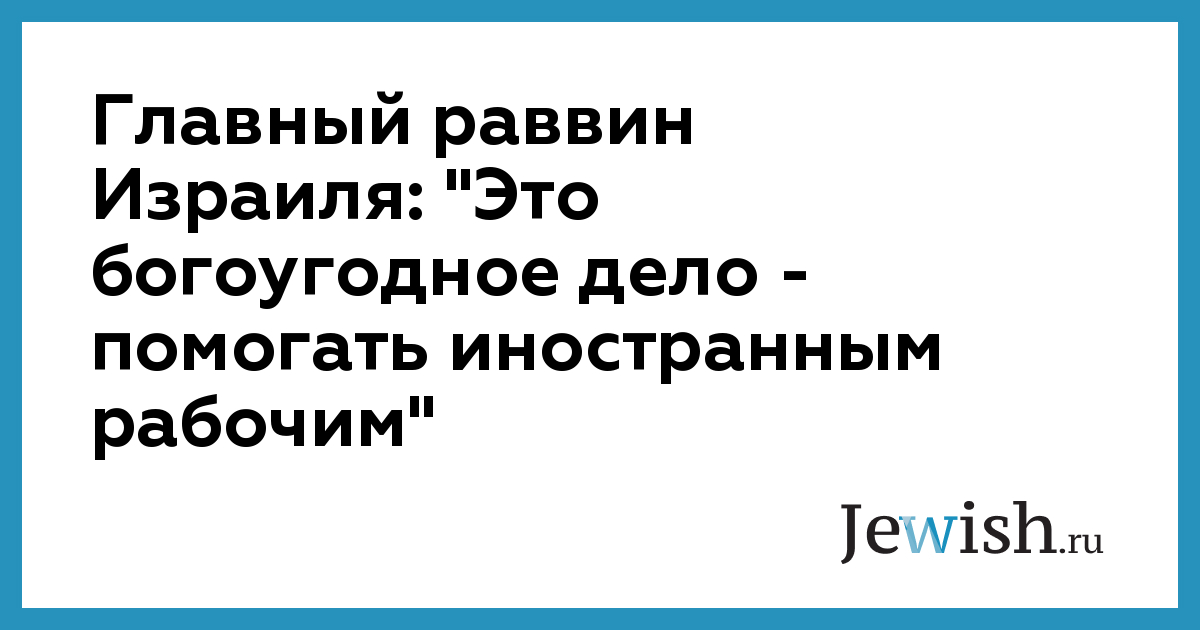 Главный раввин Израиля: "Это богоугодное дело — помогать иностранным рабочим"