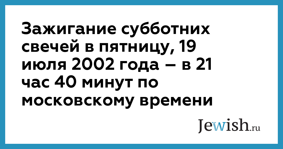 Зажигание субботних свечей в пятницу, 19 июля 2002 года – в 21 час 40 минут по московскому времени