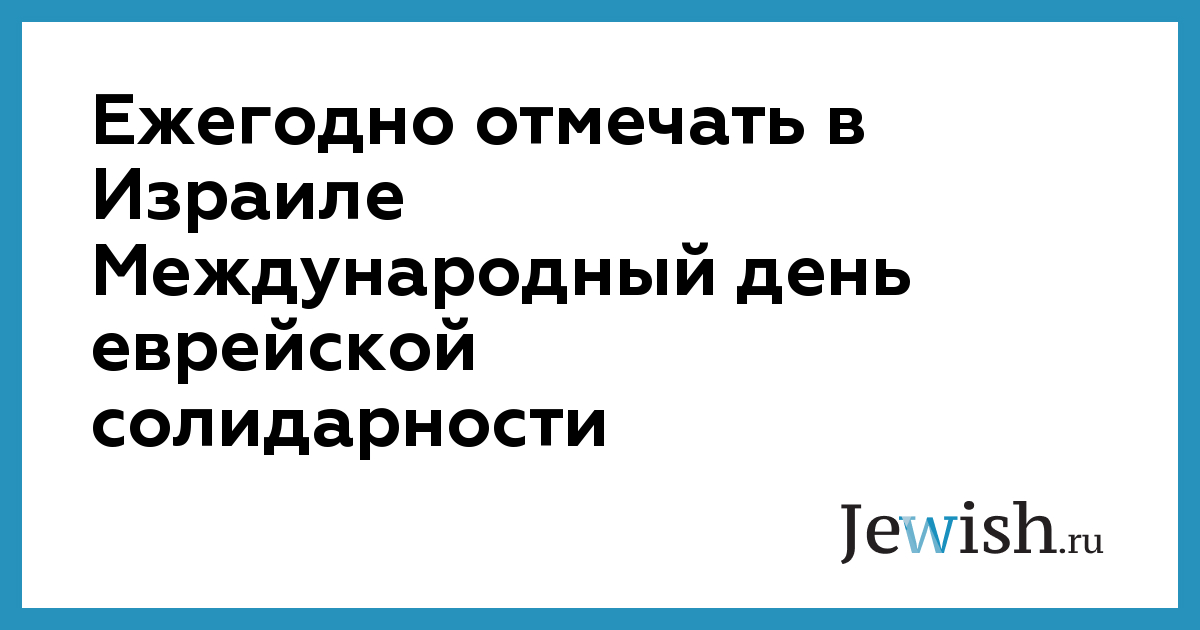 Ежегодно отмечать в Израиле Международный день еврейской солидарности