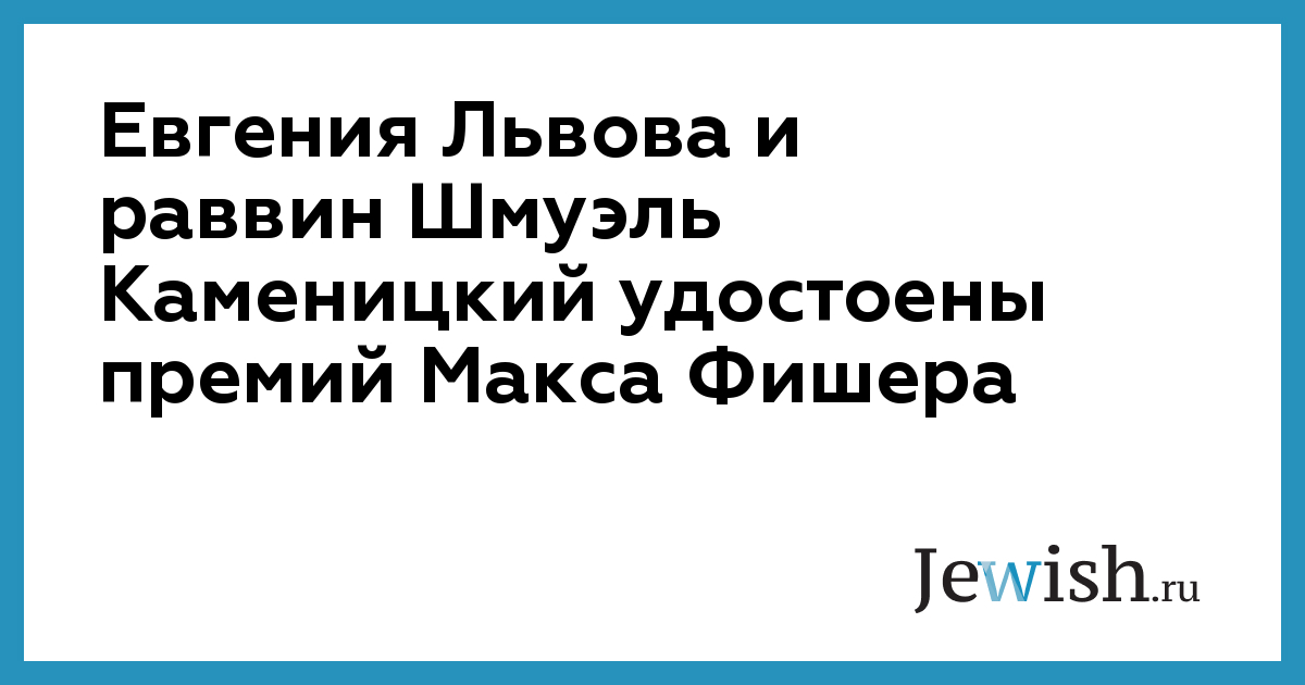 Евгения Львова и раввин Шмуэль Каменицкий удостоены премий Макса Фишера