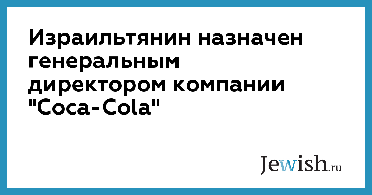 Израильтянин назначен генеральным директором компании "Coca-Cola"