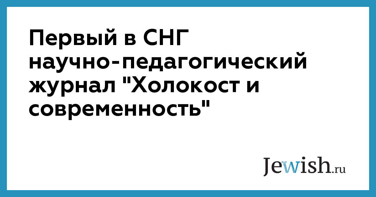 Первый в СНГ научно-педагогический журнал "Холокост и современность"