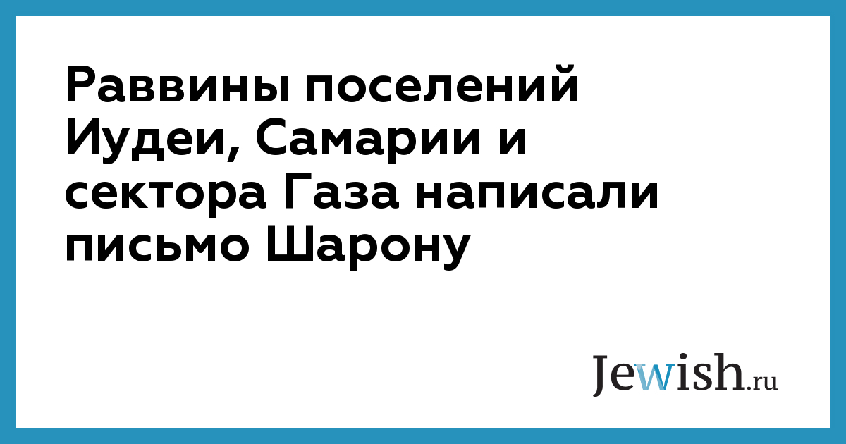 Раввины поселений Иудеи, Самарии и сектора Газа написали письмо Шарону