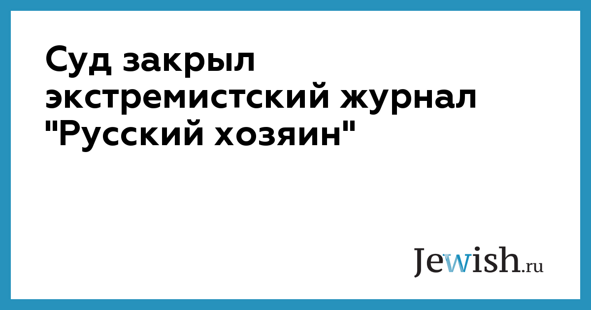 Суд закрыл экстремистский журнал "Русский хозяин"